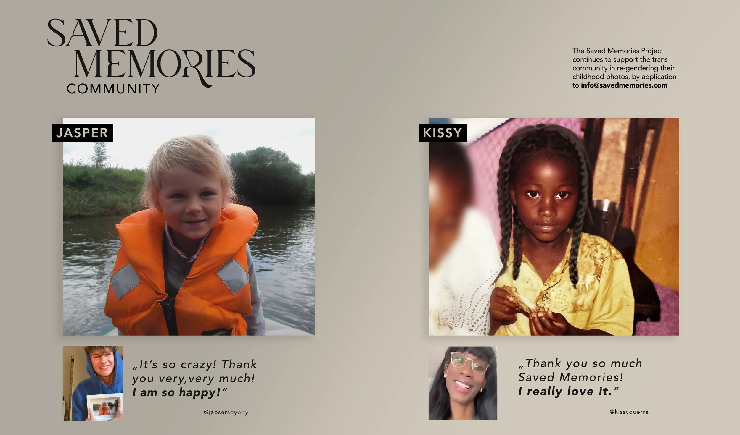 Many trans people find it too painful to look at photos taken before their transition. Childhood pictures stay packed away, leaving a part of their life hidden. ‘Saved Memories’ is an initiative that uses AI to bring these moments back into the light. By adjusting old photos to reflect their true gender identity, trans people can finally see themselves the way they’ve always felt.